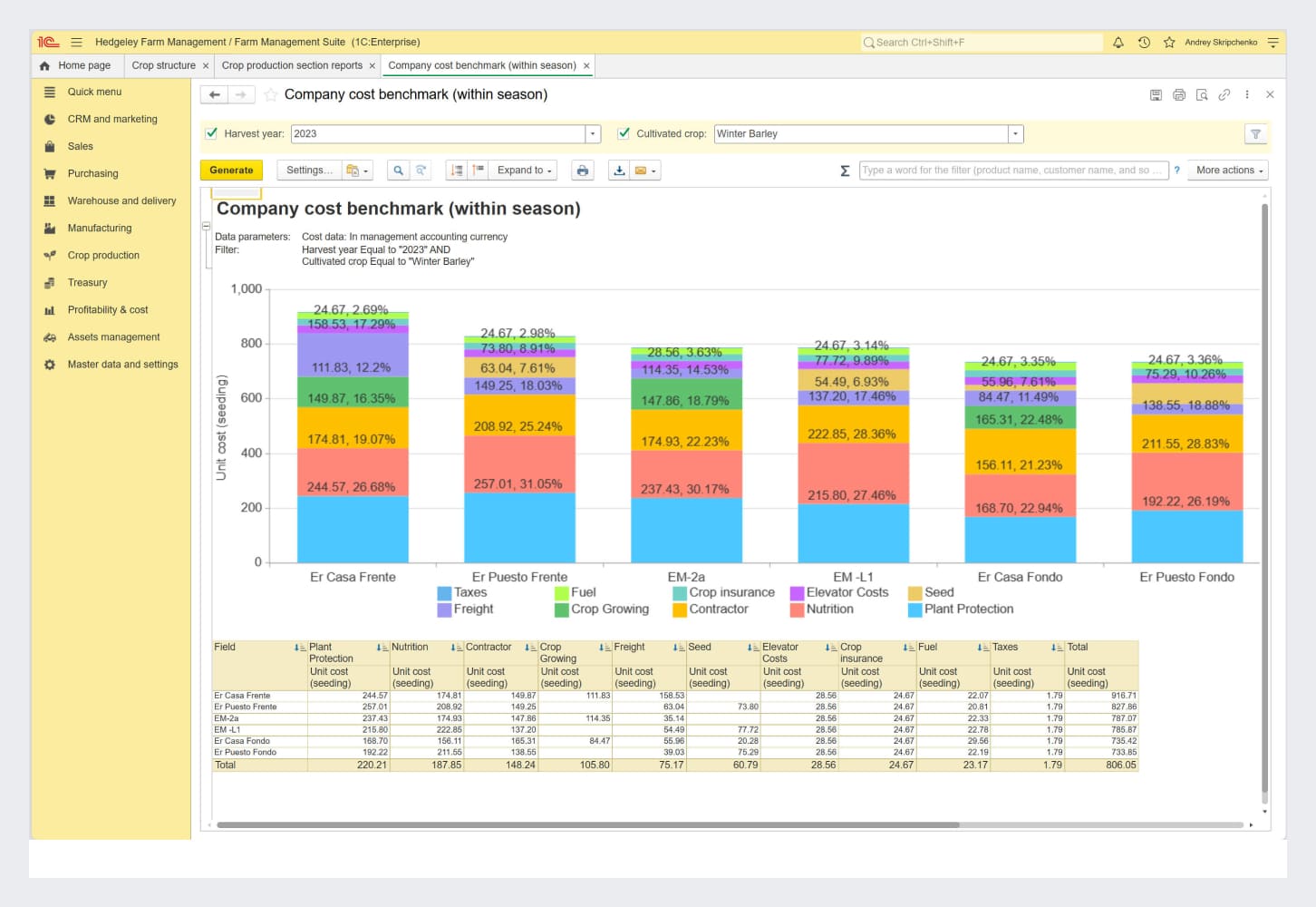Unsere früheren Erfahrungen in einem landwirtschaftlichen Unternehmen haben unseren Ansatz zur Implementierung der 1C:ERP-Lösung geprägt. Da wir die Zurückhaltung lokaler Hersteller bei der vollständigen Integration eigenständiger Lösungen erkannt haben, haben wir uns für eine direkte Schnittstelle zu Standard-ERP-Objekten entschieden. Auf diese Weise können wir genaue Kostenrechnungs- und Effizienzziele erreichen, indem wir die systemeigenen Funktionen von Standard-ERP-Systemen nutzen.