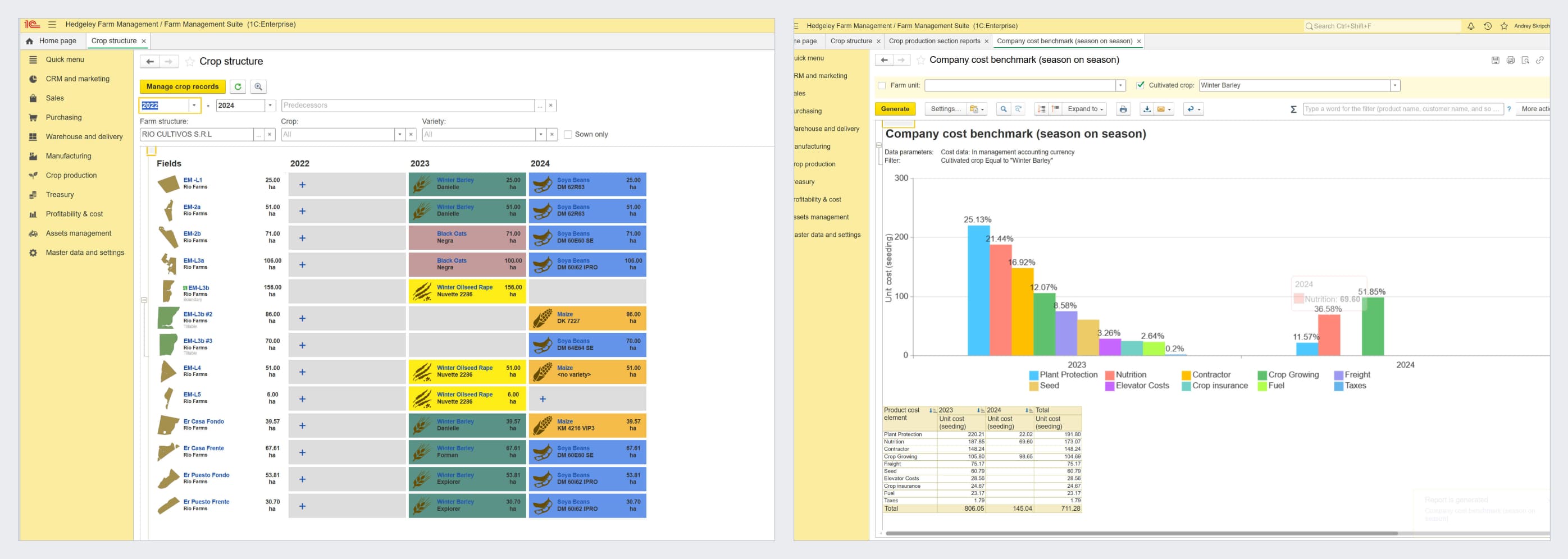 Another innovation in adapting 1Ci solutions is the introduction of the "agricultural year" concept for different climatic regions. This feature helps businesses evaluate their profit and loss (P&L) over a specific agricultural cycle, providing a tailored financial overview that aligns with the unique production timelines and sales cycles of the agricultural industry.