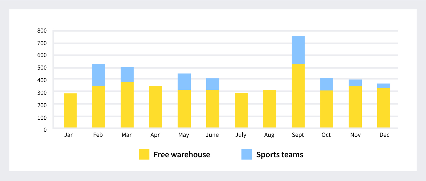 Purchases for a team are often made before a specific sporting event: the start of the sports season, competitions, and so on.