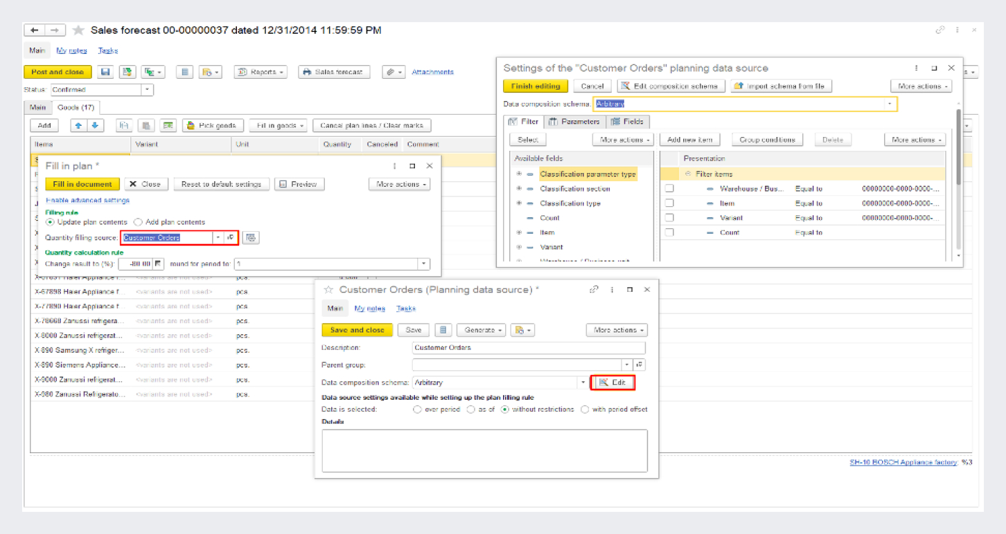 In 1C:ERP, sales forecasts built using distribution standards are calculated in the same way.