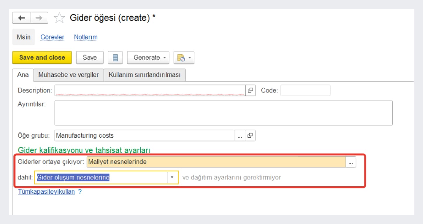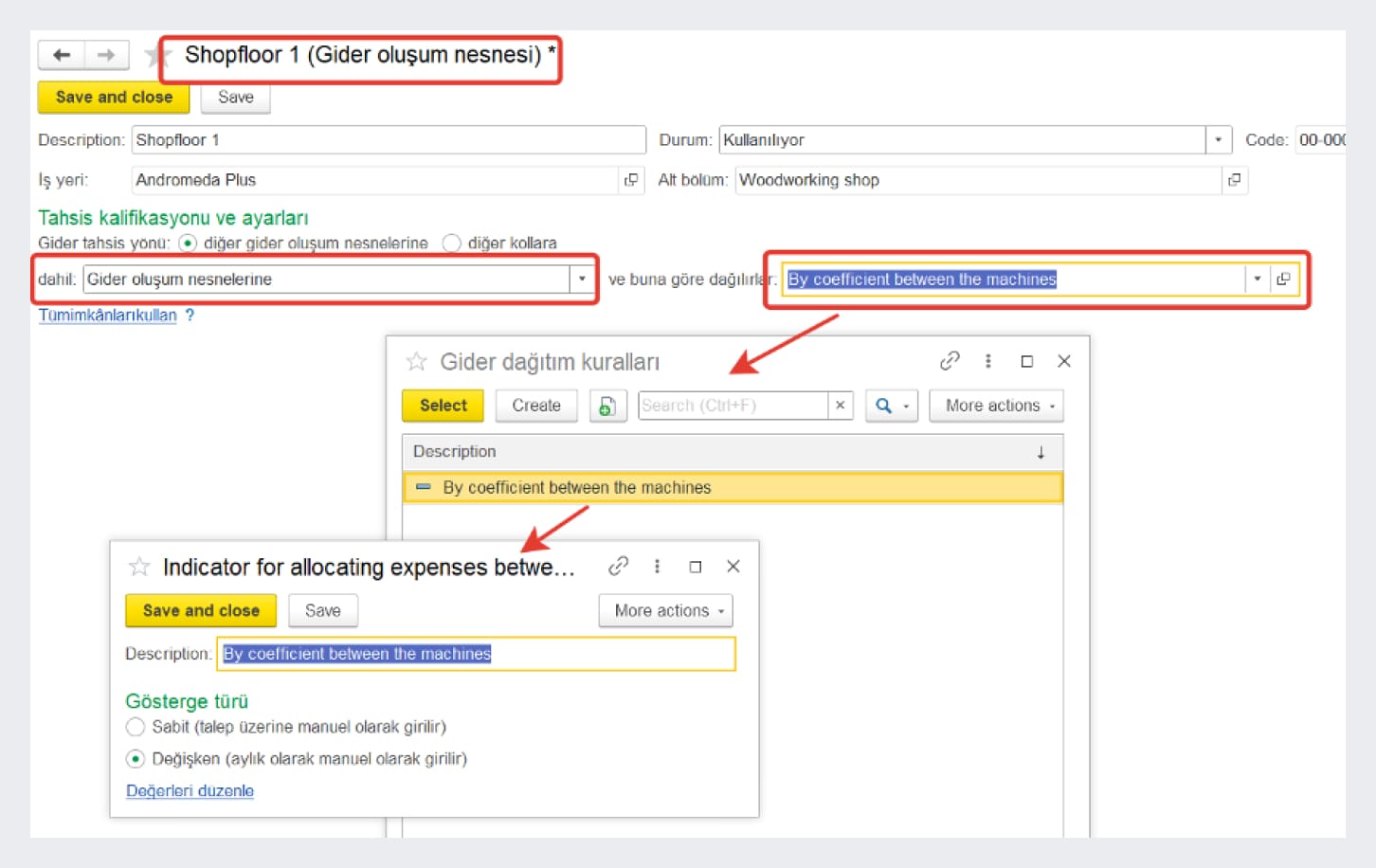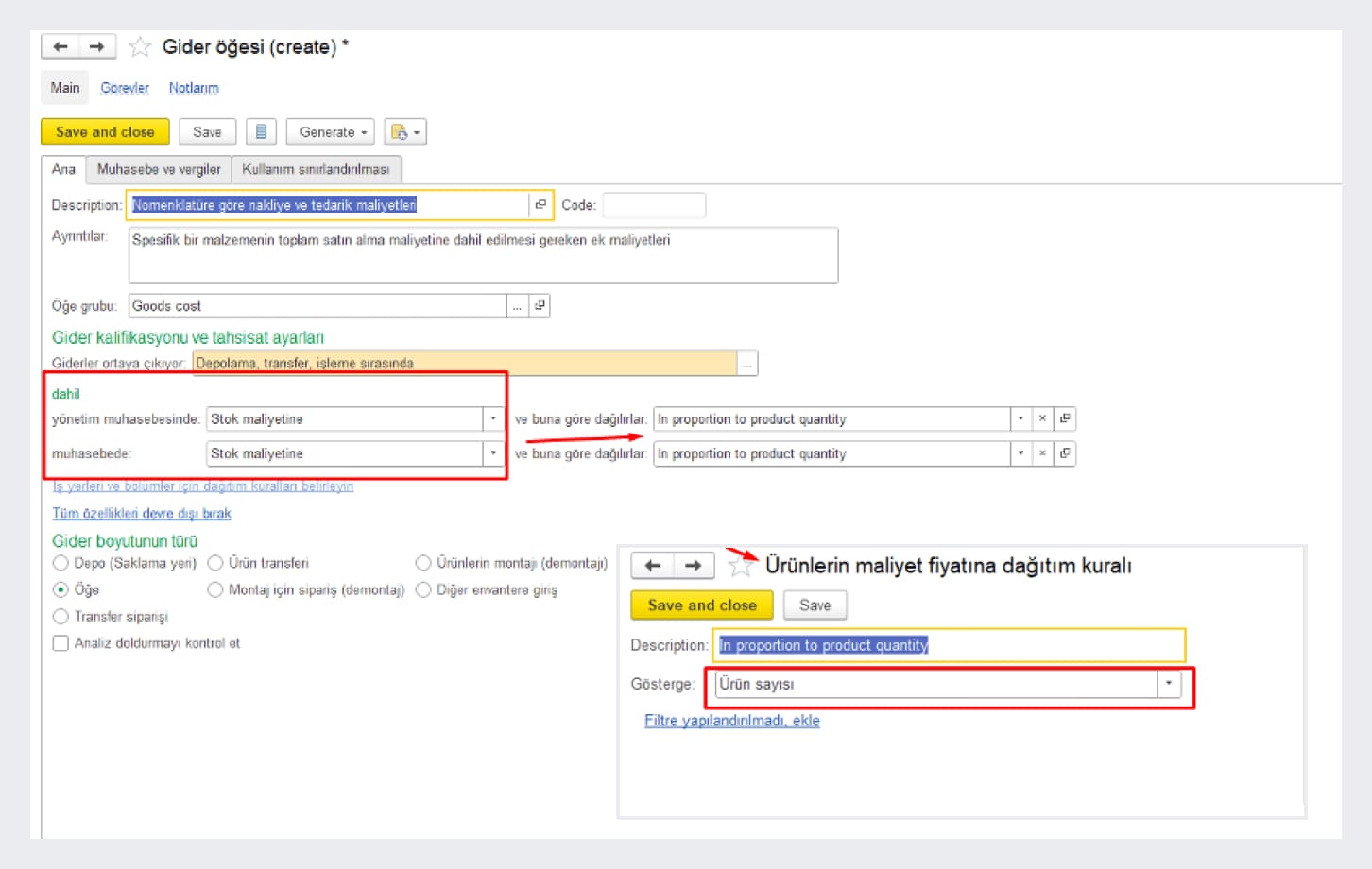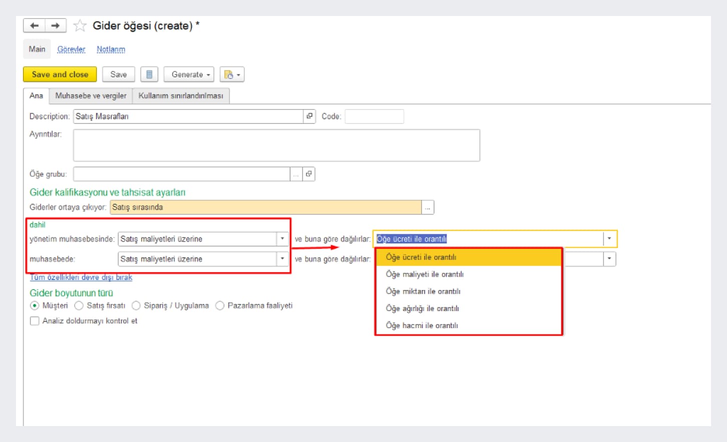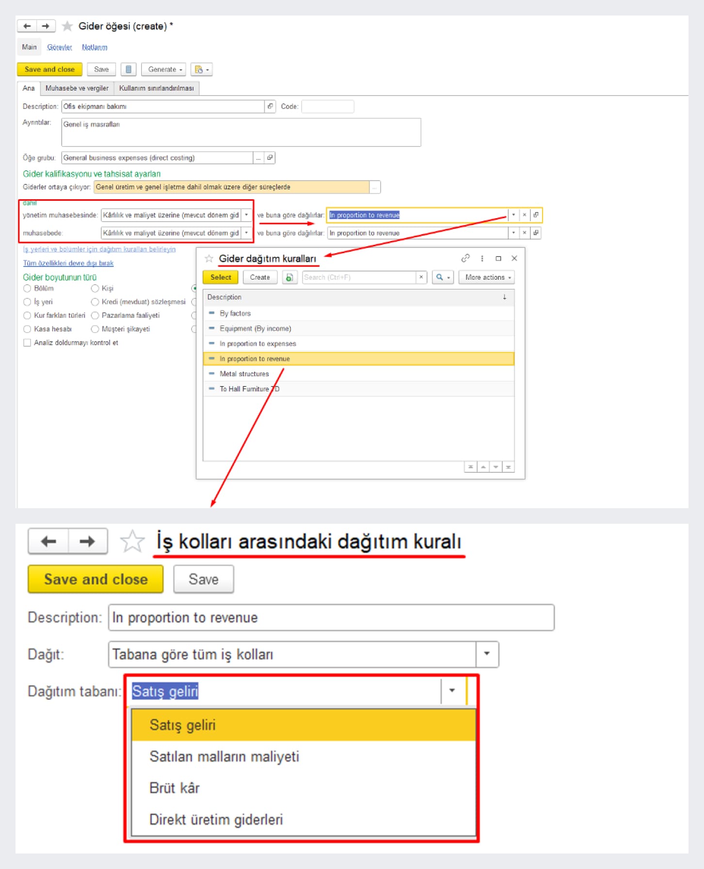 Gider kaleminin maliyet merkezlerine tahsisi ayarları
