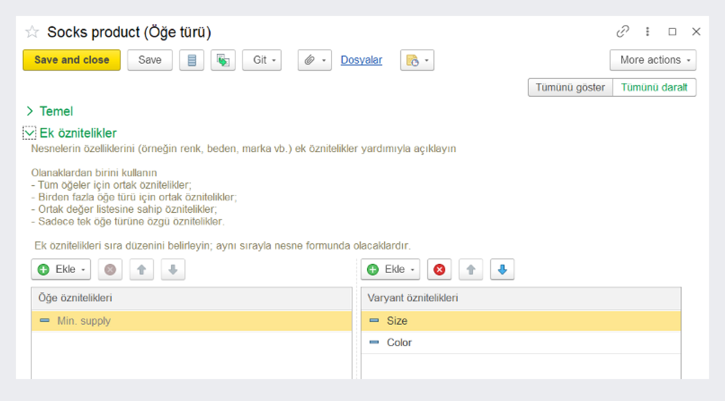 1C:ERP'de kumaş bileşenine göre dağılım standardı