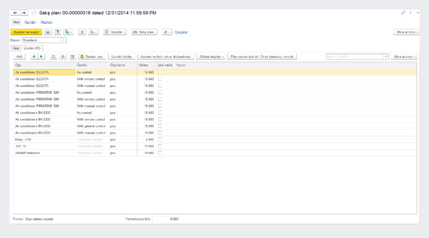 Sistem verilerinden hareketle hesaplanan plan, manuel ayarlanabilir. Plan verileri üzerinde değişiklik yapıldığında planlama sürecindeki diğer katılımcılara, düzenlemenin gerekçesini açıkça belirtmek için bir yorum yazabilirsiniz. Bu sebeple eğer bir plan, birden fazla pazarlamacıya/satış elemanlarına gönderilmiş ise, her biri orijinal planlarında kendi ayarlamalarını yapabilecektir (satış tahminine yönelik kendi uzman değerlendirmeleri yapılabilir).