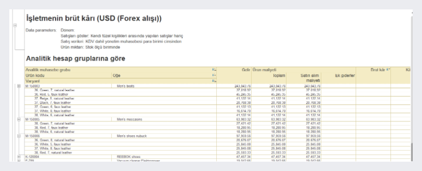 1C:ERP'de satış tahmini, 1C:ERP'de satış raporu parçası