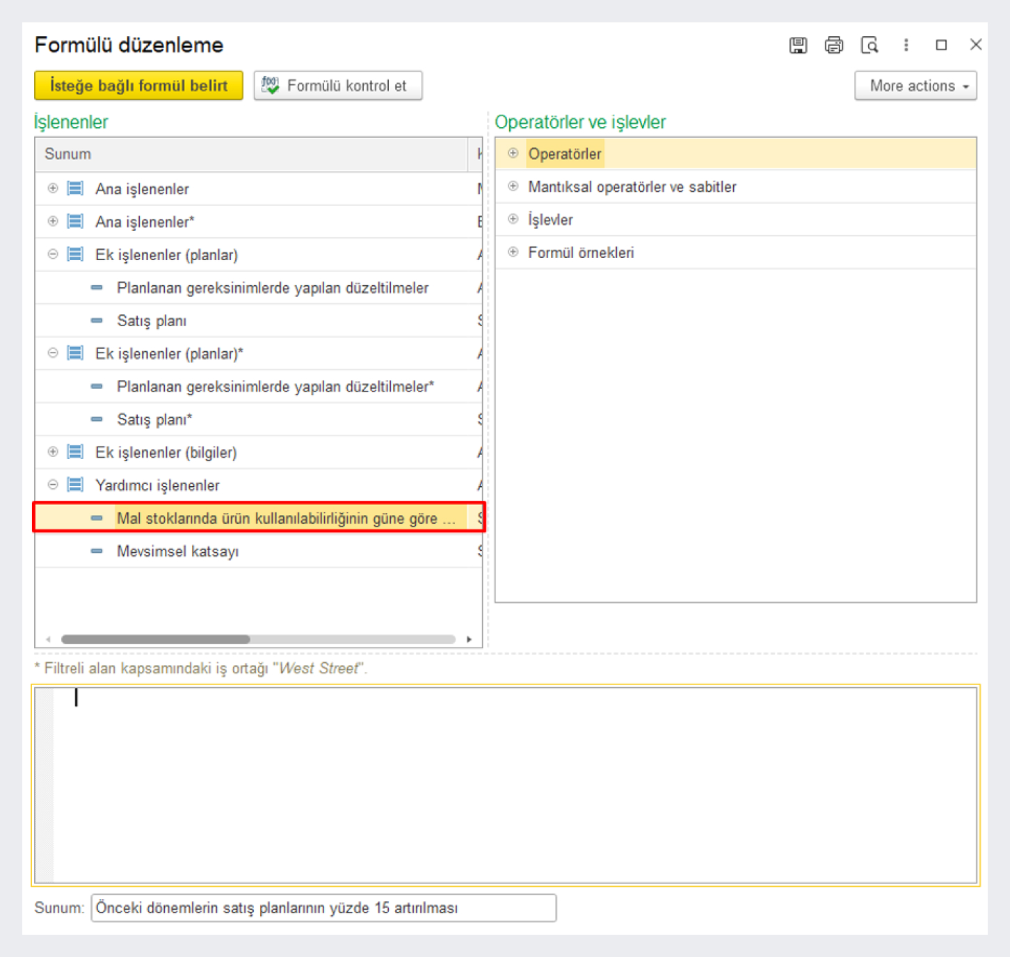 1C:ERP'de tahmin tablosunu doldurmak için formülün düzenlenmesi