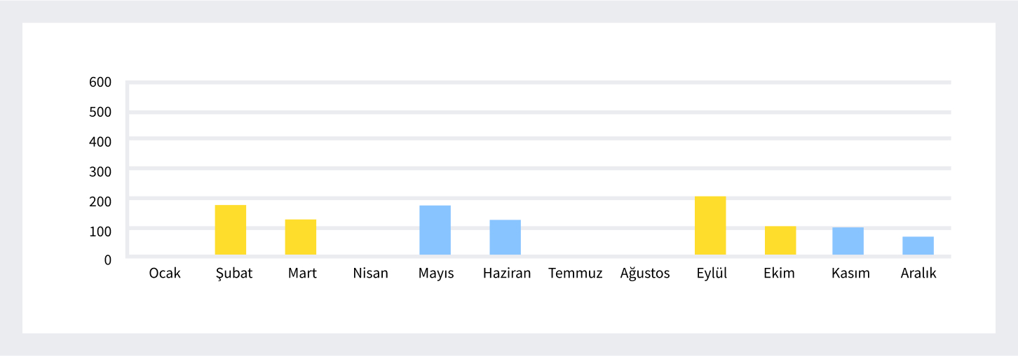 Excel'deki grafik. Bölge No.2 için aylara göre spor takımı talebi